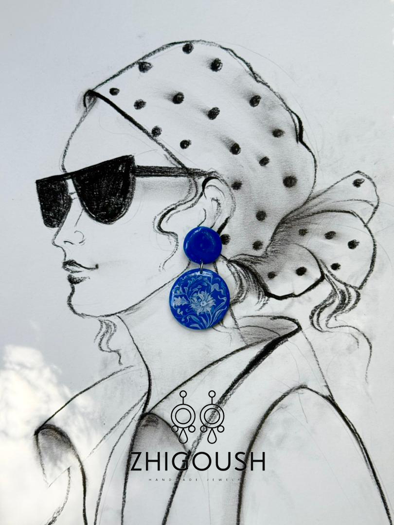 گوشواره خمیری دستساز-نقاشی شده با پوشش رزین- قطعات استیل ضد حساسیت-بسیار سبک