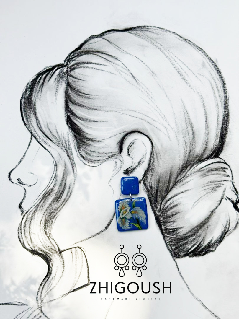 گوشواره خمیری دستساز-نقاشی شده-با پوشش رزین و قطعات استیل ضد حساسیت-بسیار سبک