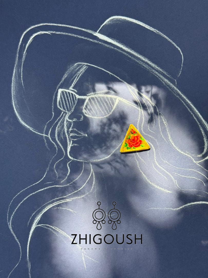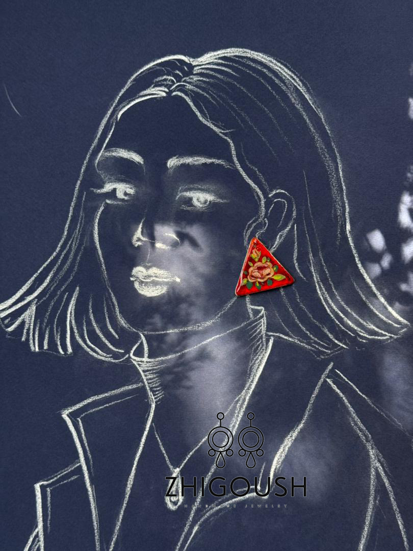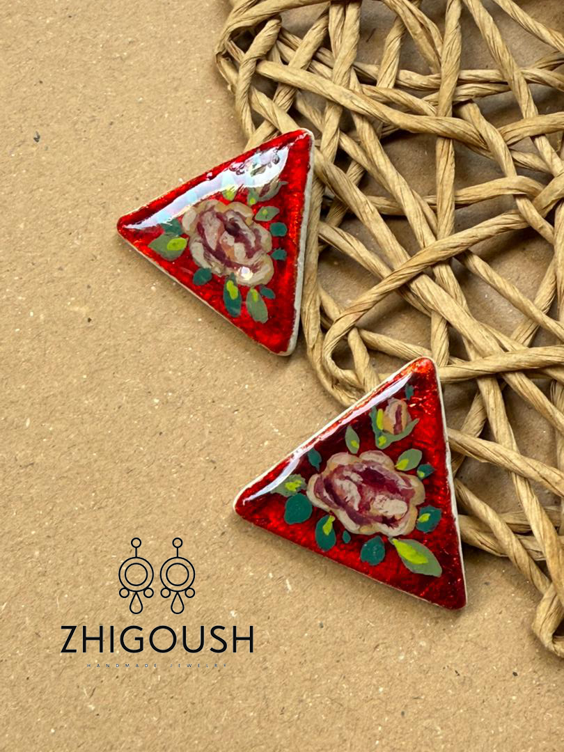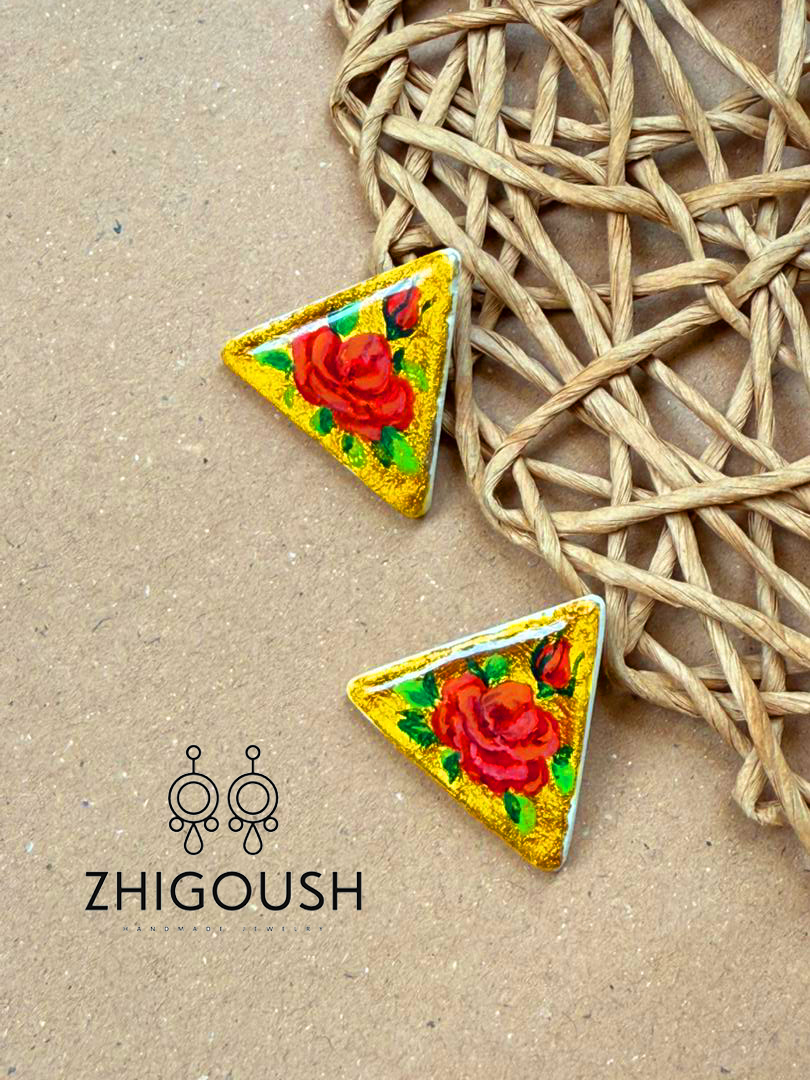 گوشواره خمیری دستساز-نقاشی شده روی ورق طلا- تکنیک لاکی روغنی با پوشش رزین-با قطعات استیل ضد حساسیت-بسیار سبک
