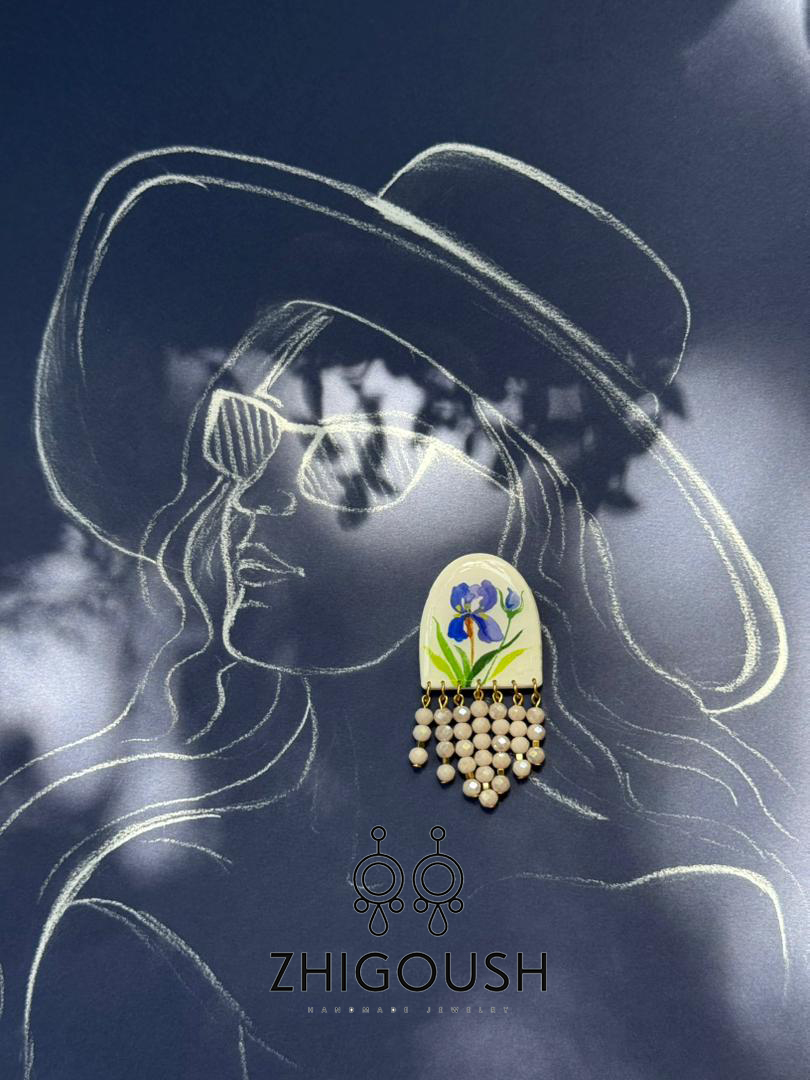 گوشواره خمیری دستساز-نقاشی شده با پوشش رزین-با قطعات استیل ضد حساسیت