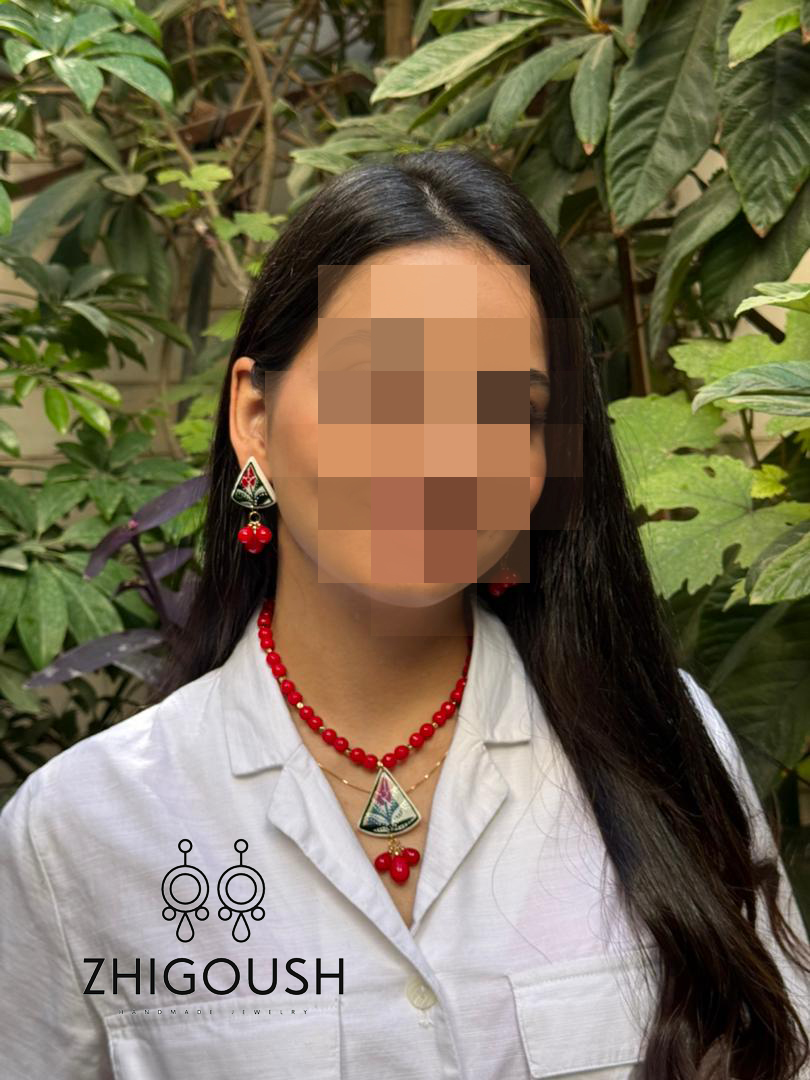دستهبندی: گردنبندبرچسبها : زیورآلات_دستسازجواهرات_خاصuniquejewelryهنر_دستاکسسوریزیورآلاتhandmadeرنگ: سبز و قرمز